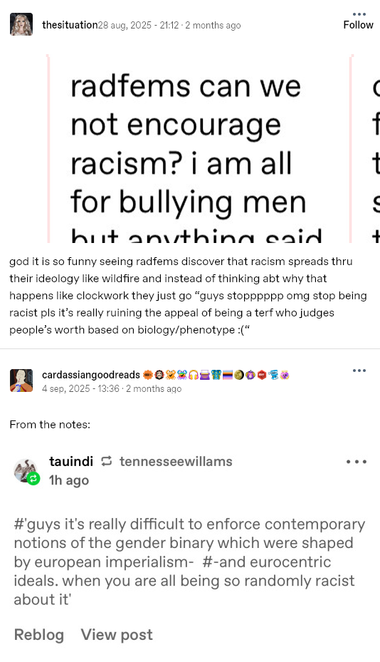 Sal@lemmy.world · 2 months agoTERF has a problem with ONE type of bioessentialismplus-squarelemmy.worldimagemessage-square5linkfedilinkarrow-up1128arrow-down15