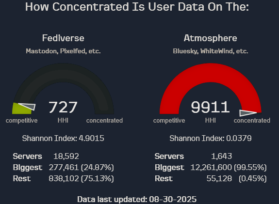How decentralized Bluesky is compared to the Fediverse.