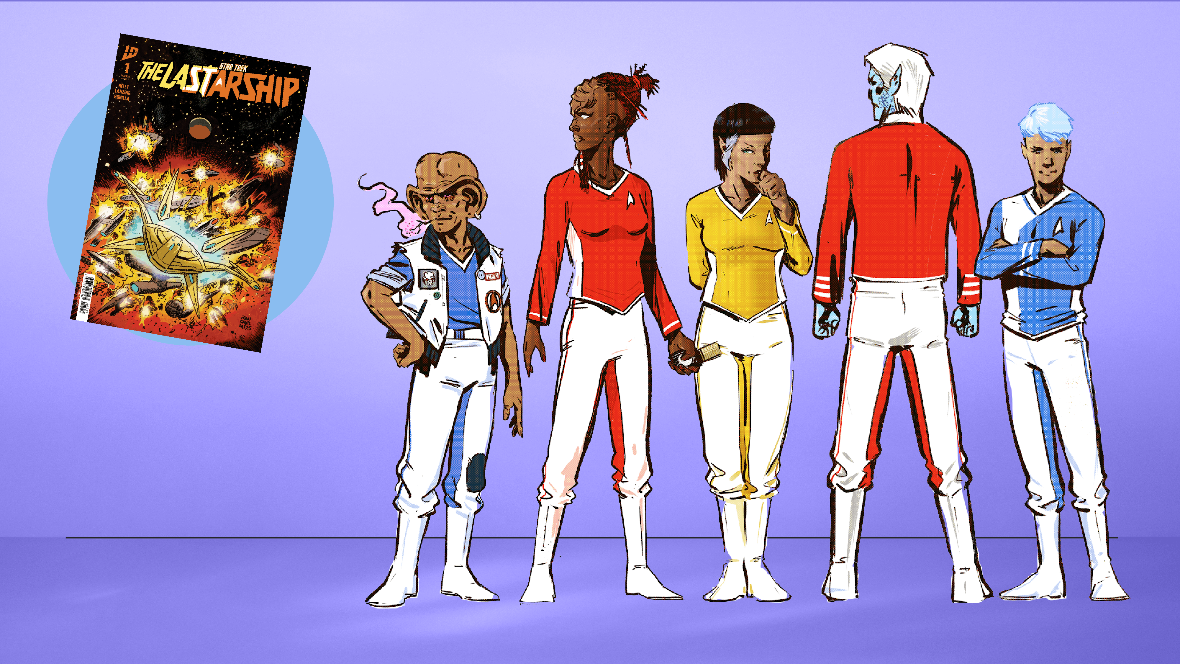 This is an unfortunate design choice.Despite having perhaps the worst logo in comic book history, I am look forward to this book. The art looks pretty good, even if the uniforms are booty, and I did like the recently ended ongoing Trek book that Kelly and Lanzing wrote.