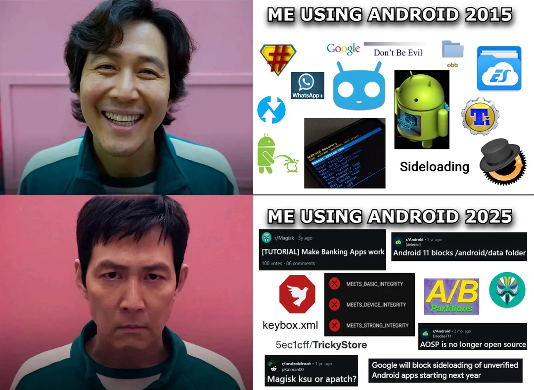 The time to support Android was 15 years ago when you could install any OS on any device, side load anything you wanted, root, mod, replace your battery, have full control over your file system, expand your storage, etc. Or 10 years ago, when Google was selling completely unlocked developer oriented phones, offering most of its services for free, opening sources, and actually innovating in fields like computational photography while also researching interesting concepts like modular phones.