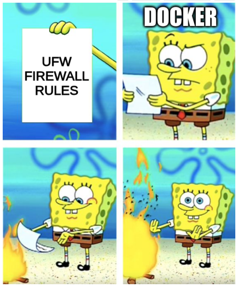 network: hostgives the container basically full access to any port it wants. But even with other network modes you need to be careful, as any-p <external port>:<container port>creates the appropriate firewall rule automatically.I just use caddy and don’t use any port rules on my containers. But maybe that’s also problematic.