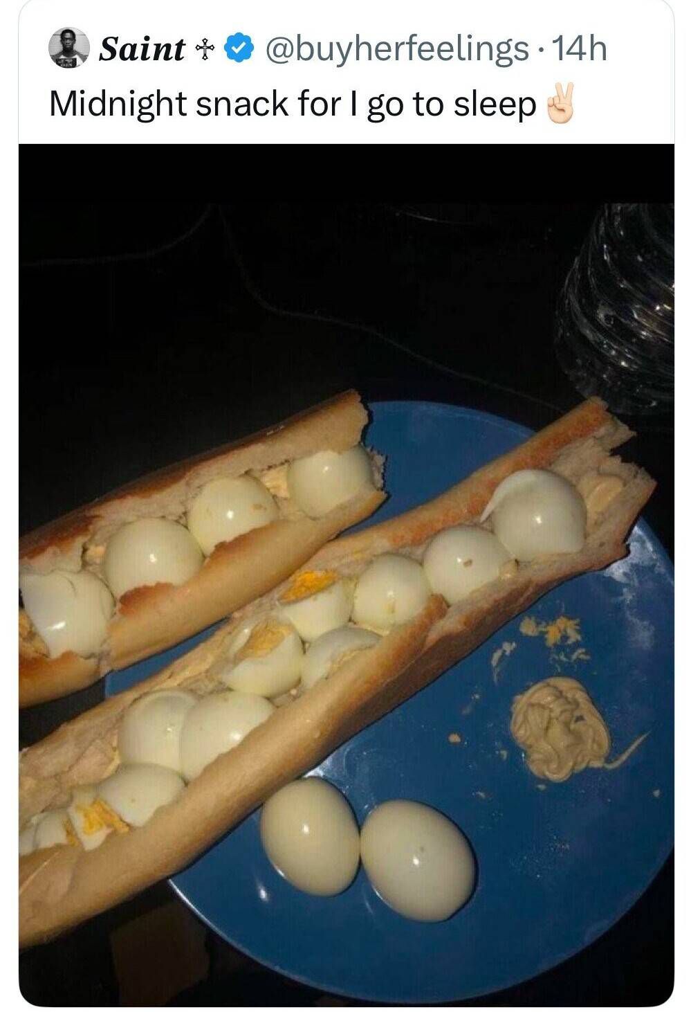 I legit just smashed a hard boiled egg onto a piece of sourdough bread with some grey poupon, and then saw this.