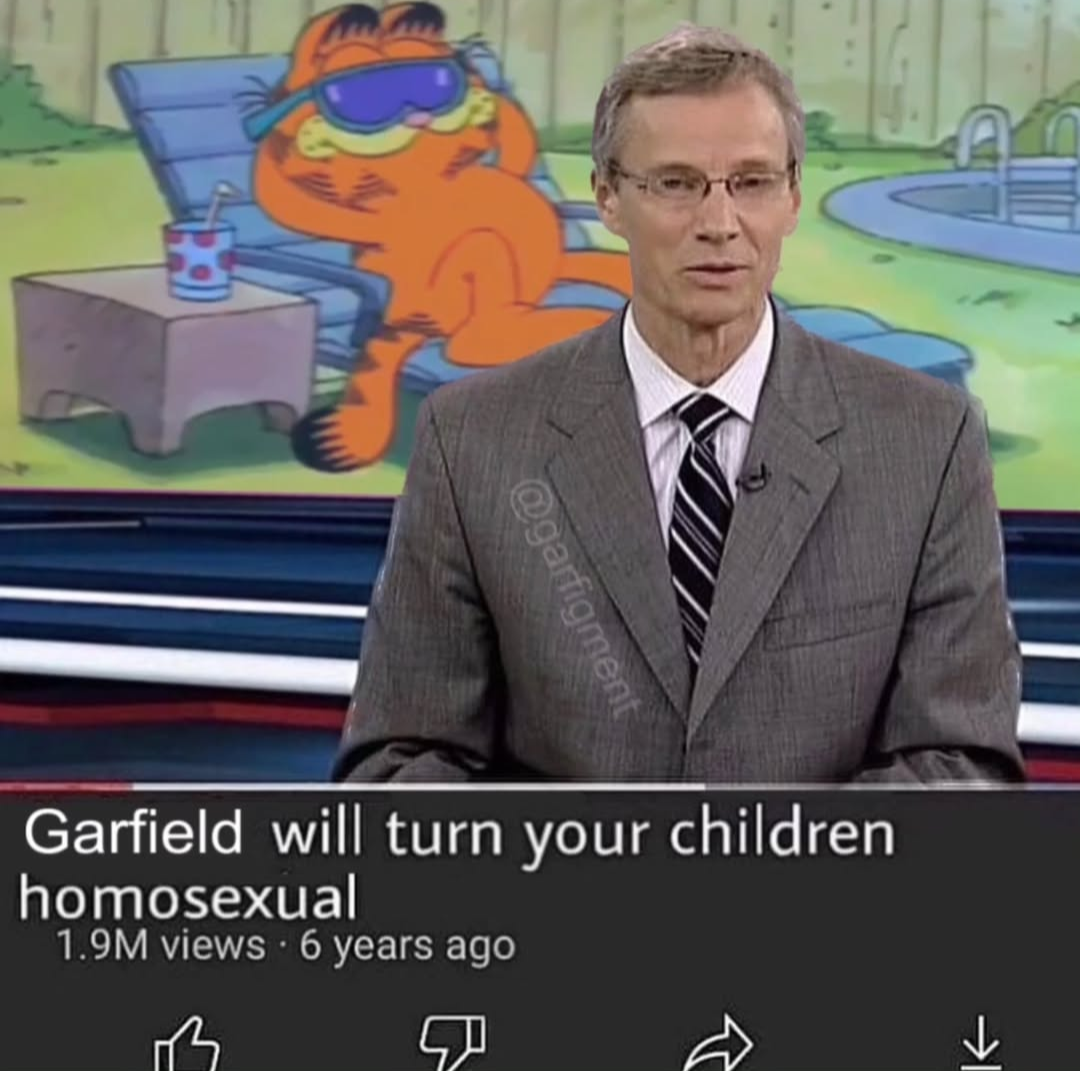 Oh yeah, and I definitely turned out gay. But I guarantee you it wasn’t the 10/10 hotties that John Arbuckle was pulling or anything related to Garfield himself. It was entirely Nermal. Grew up living my entire life thinking Nermal was a girl, only to realize that in my recent re-watch that Nermal’s pronouns are he/him. These woke ass shows have been woking kids up since the dawn of time.