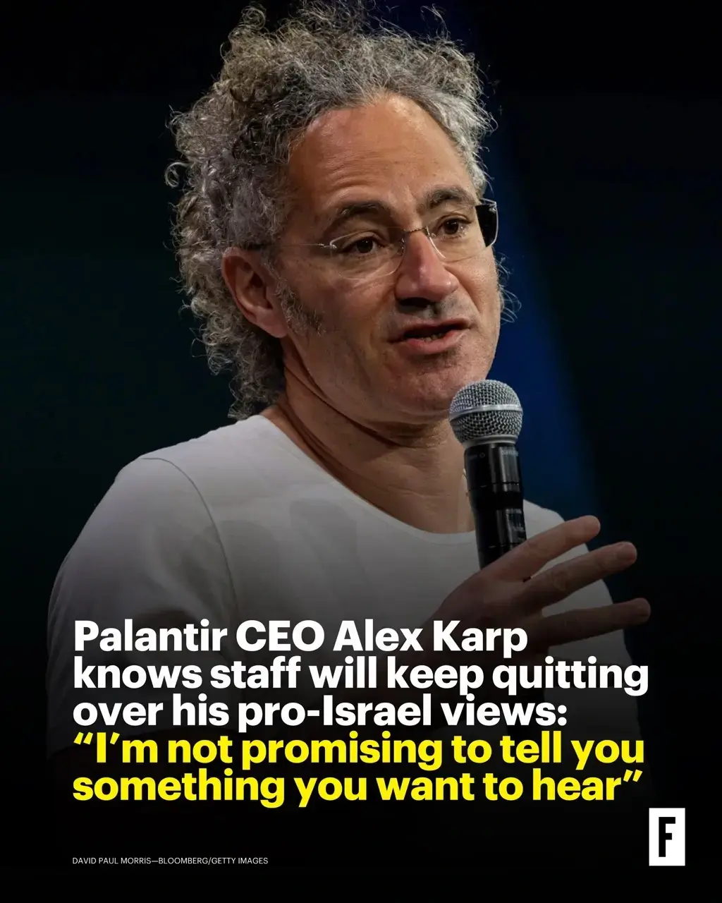 That’s what confuses me. How do you have enough moral character to quit over the CEO’s support of Israel but you’re totally fine with the core business model of surveillance state services.