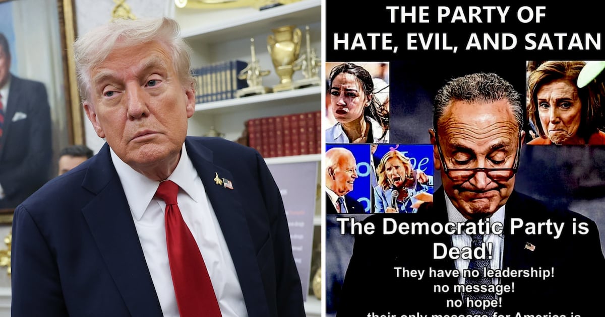 arrow-up1311arrow-down1external-linkTrump Brands Dems the ‘Party of Satan’ in Unhinged Rantwww.thedailybeast.comRedditsux@lemmy.world to politics @lemmy.world · 1 day agomessage-square59linkfedilinkfile-text