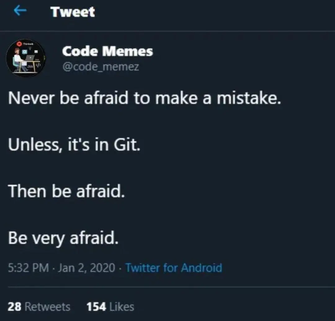 Just saying that point 1 is very true. And yeah don’t make mistakes in git.
