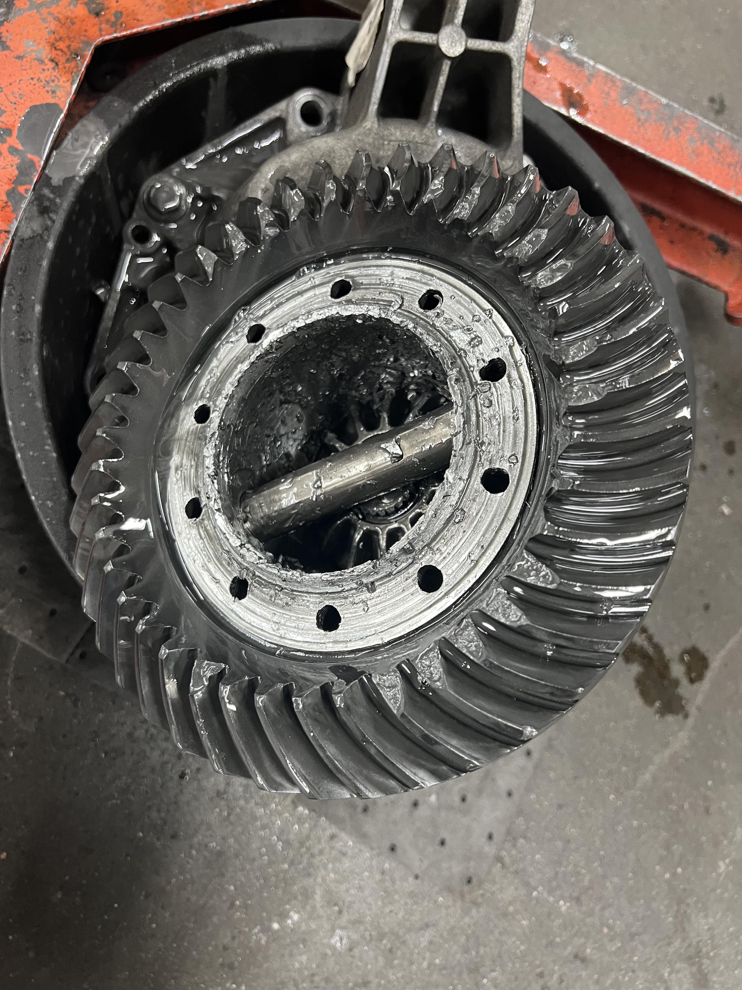 Most “e limited slip” diffs are just a normal rear diff, and the brakes do the “limited slip” part. This just looks like a blown rear diff.Edit: looks like a proper eDiff from a Vette. Ya, he was gooning it.