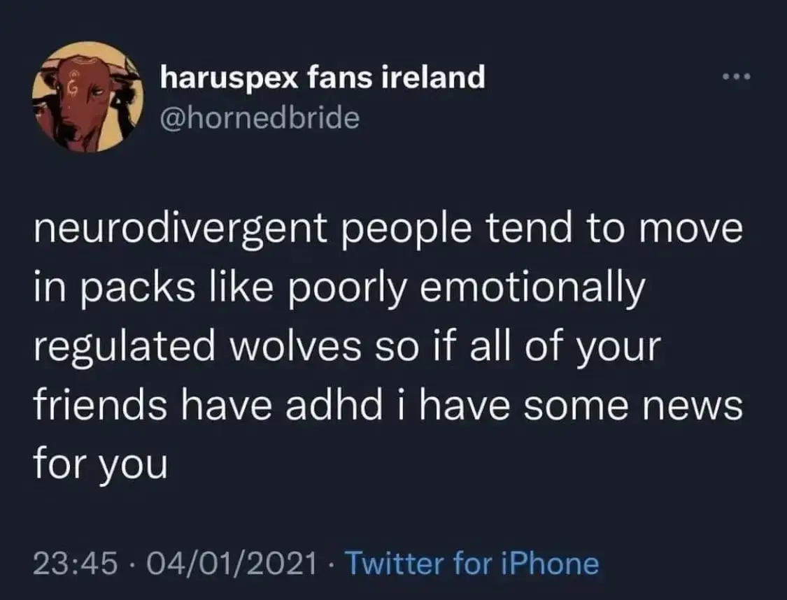 Cool, so you can’t be friends with people that are neurotypical and we gotta lean into the tribalism.