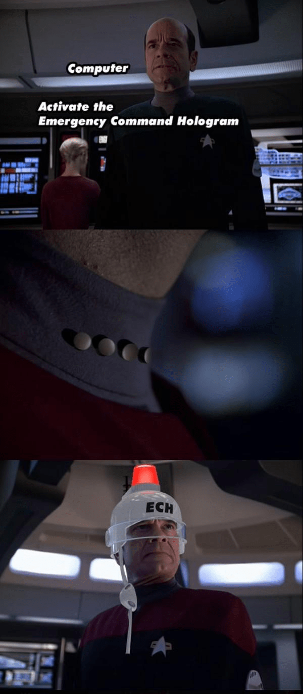 I’ve seen the Spock helmet in person. It only looks silly with ECH written on it.