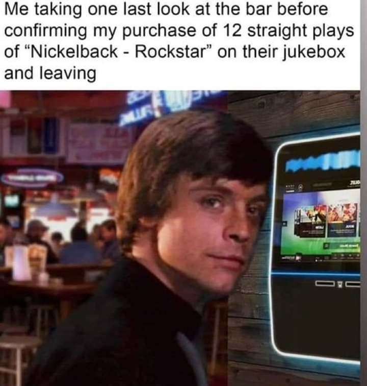 I bet. I’ve seen karaoke night, it’s brutal how many shitty renditions of “fuck her gently” and “Bohemian Rhapsody” you have to sit through.