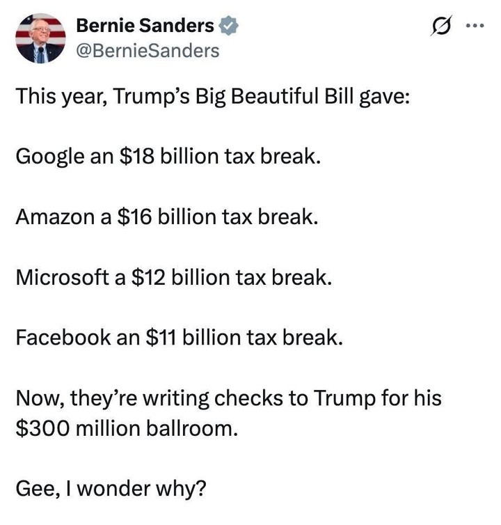 What a great return of investment on donating a few hundred million to the Epstein Ballroom.
