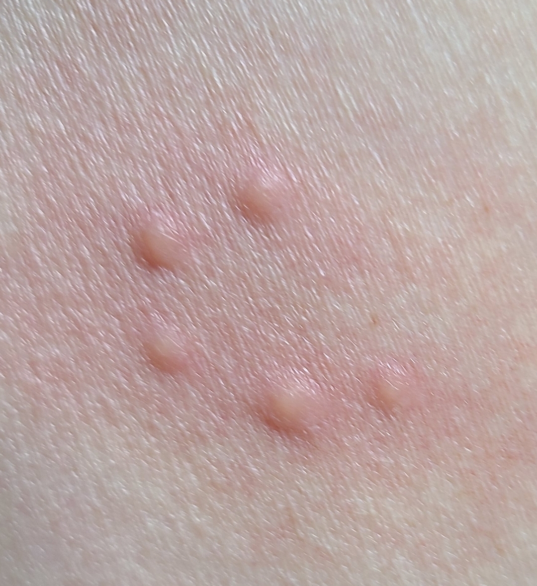 Bed bugs. The internet will tell you they only bite in a straight line, but that’s horse shit. Look up bed bug bites and you’ll see clusters like this, too.
