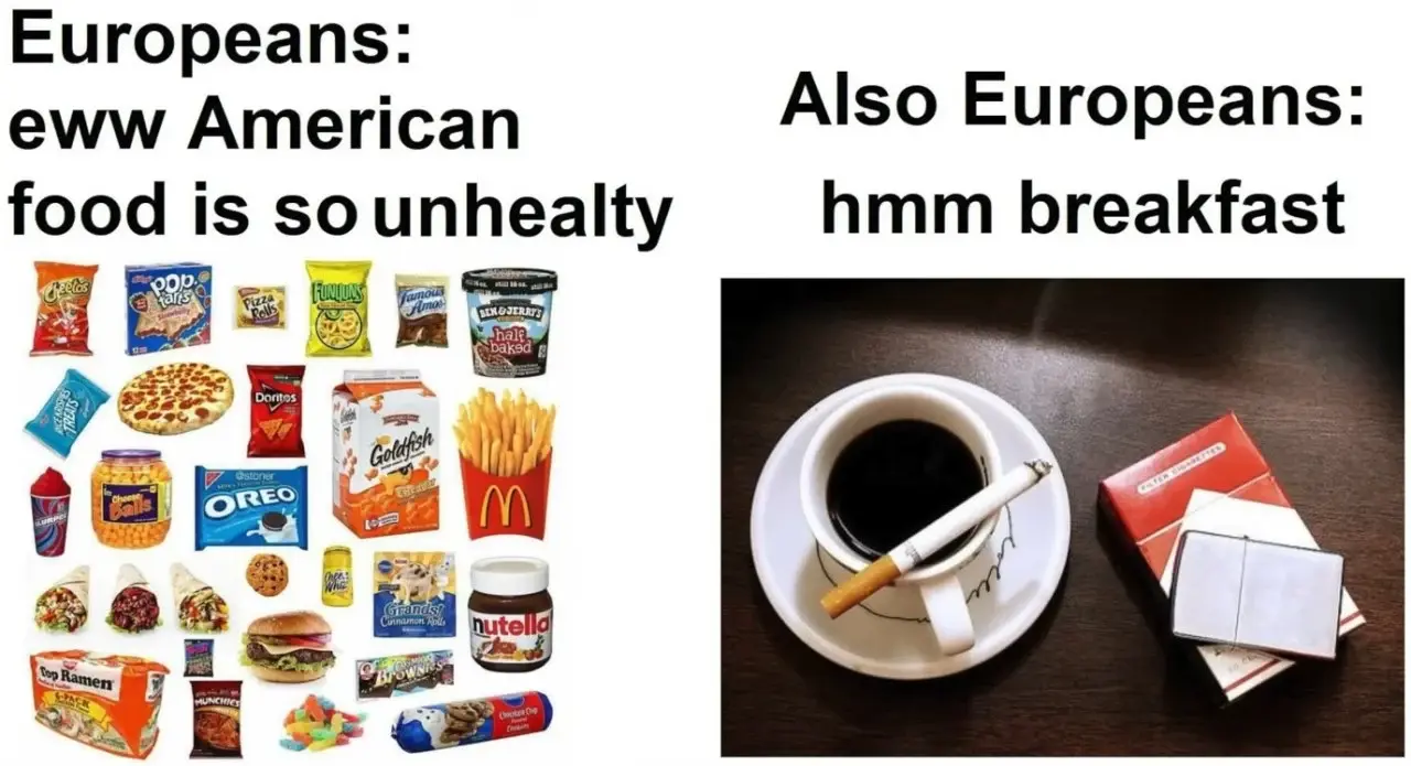 Lived in Europe my whole life and never seen anyone pair coffee and cigarettes as part of their breakfast