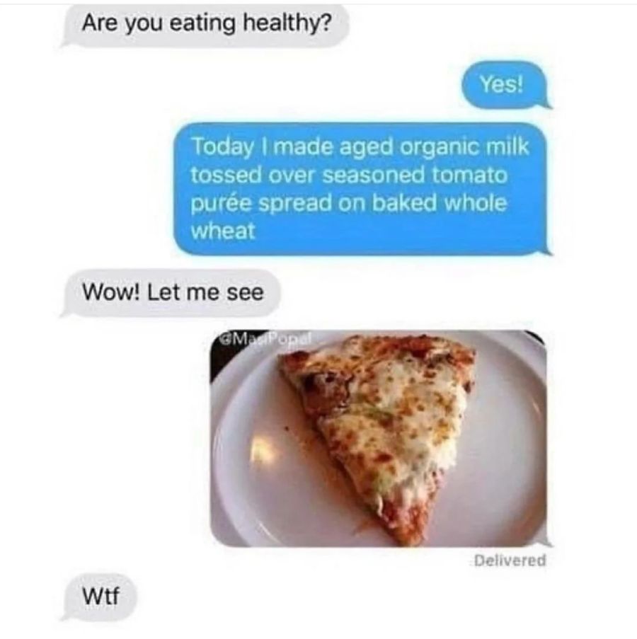 Jokes aside, pizza really is a pretty healthy complete meal. As with all things, moderation is the most important factor.
