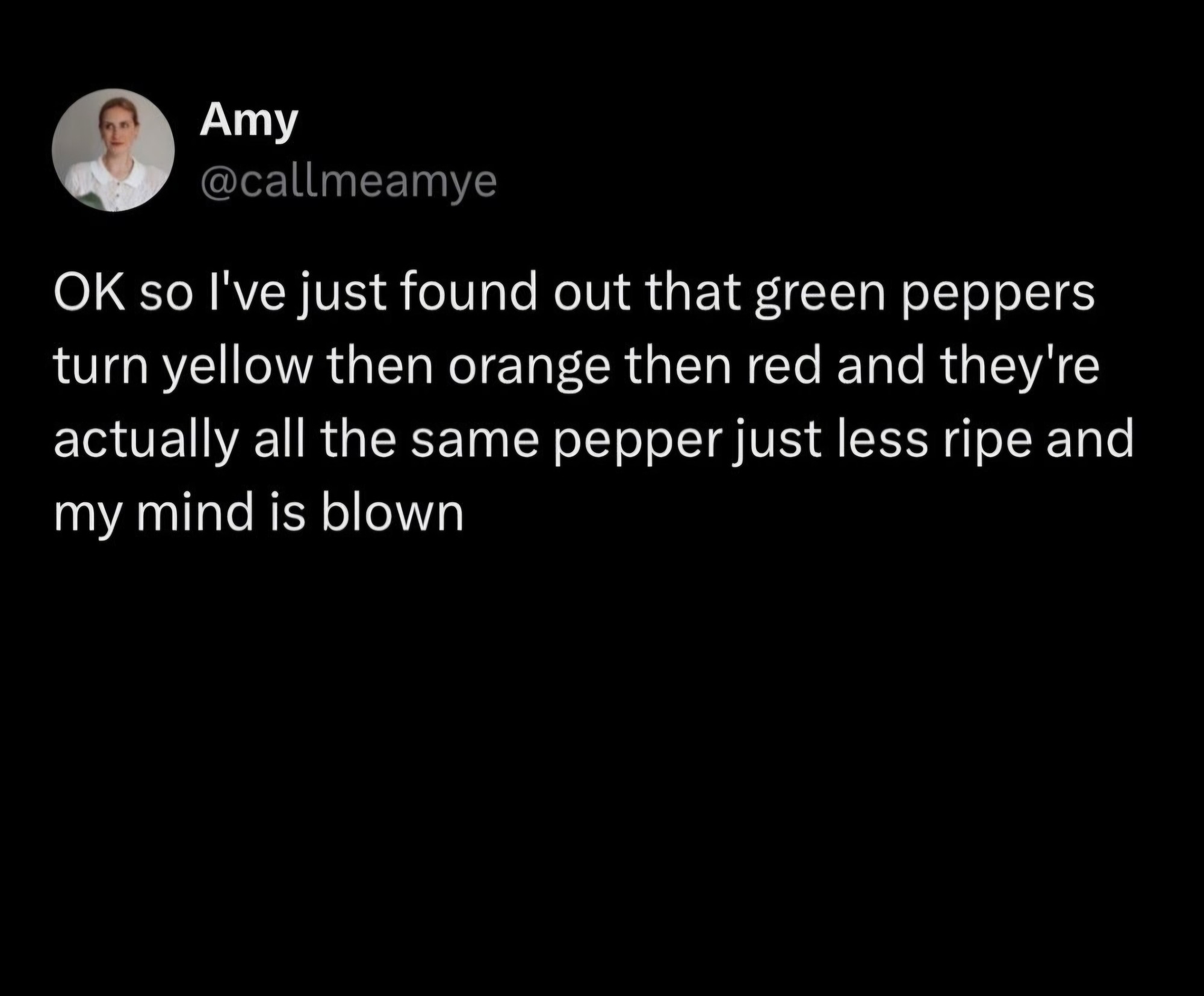 Yeah I don’t think they do what OP claims. I had bell pepper plants in the garden this year. One green one, which stayed green, and one purple, which do start green but transition to just purple when ripe, but no other colors after that.