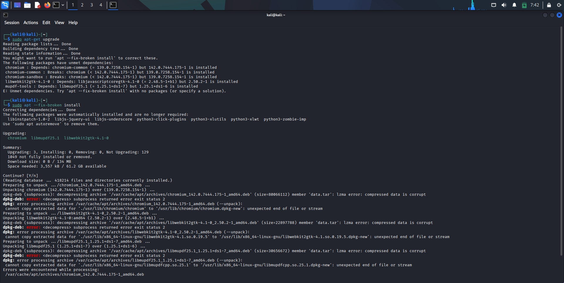 Those errors look like file corruption. Maybe they were partially downloaded or written to a flakey disk, it’s hard to say. I’d also echo the other comment or that Kali (and honestly Debian) are not well suited for gaming due to the distro preference for Freely-licenced software and favouring stability vs quick releases.