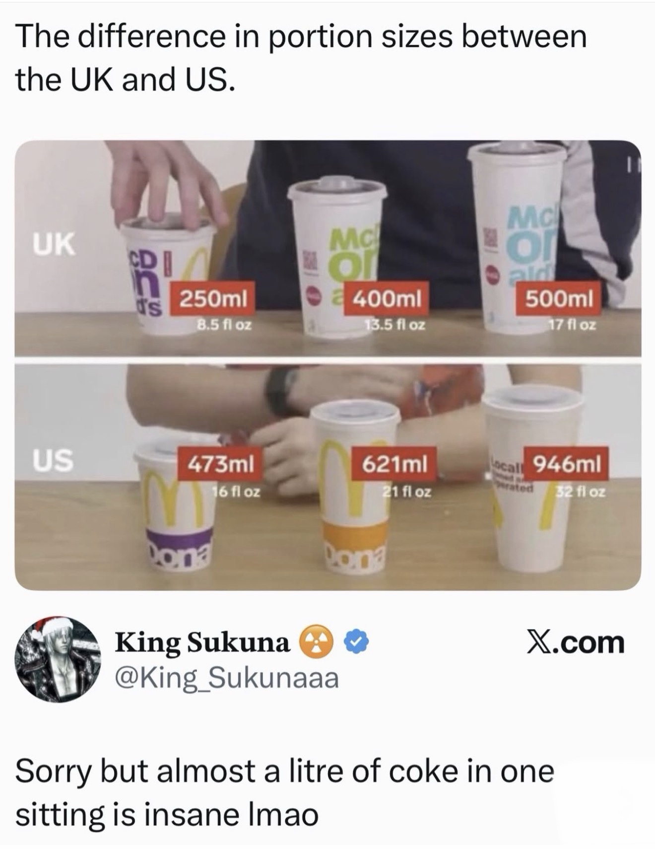Important to bear in mind that Americans also put a ton of ice in the cup too.