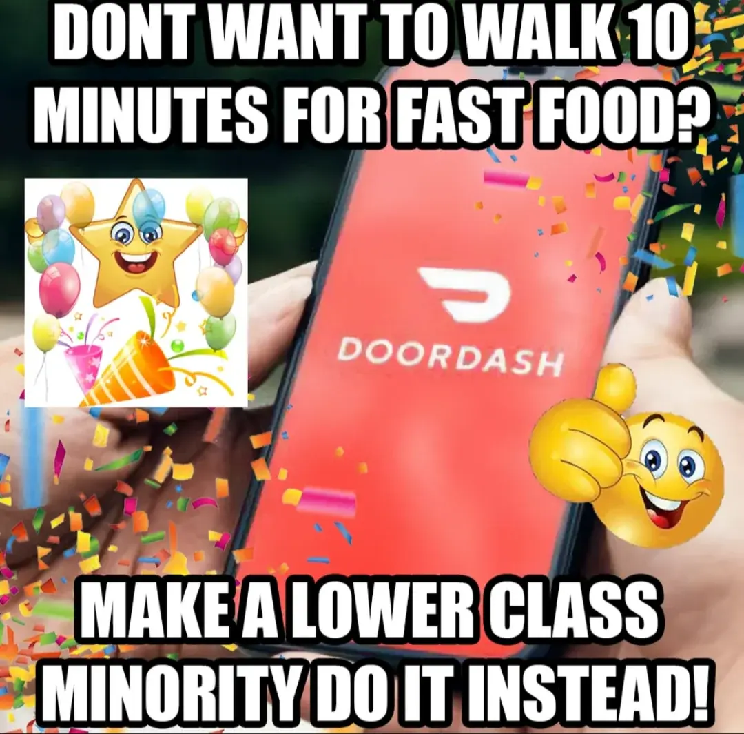 Consider folks with disabilities or those who don’t own cars. I really don’t see the problem of a delivery service like DoorDash or UberEats that would pay its workers a living wage.