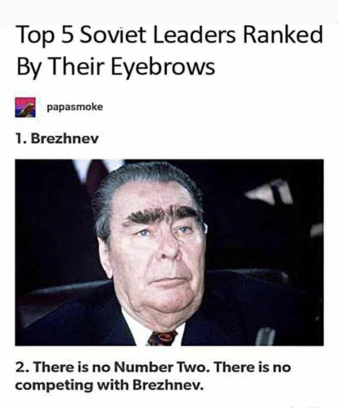 Brezhnev isn’t #1, he’s the entire leaderboard — those eyebrows have their own ZIP code.
