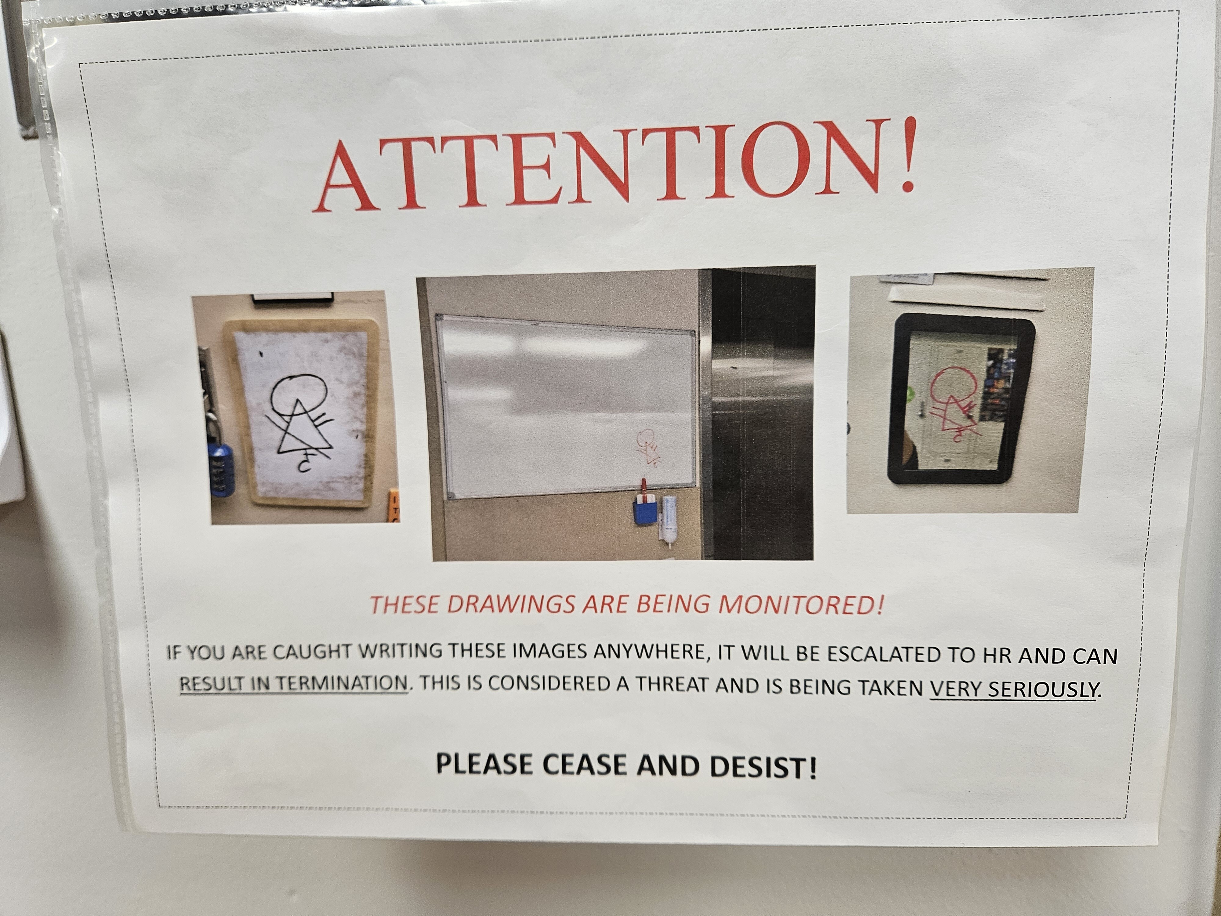 I have no idea. I work in a large department and I don’t know who 3/4 of my coworkers are. I’ve never even seen the symbols in person, this was the first time I was made aware of them.