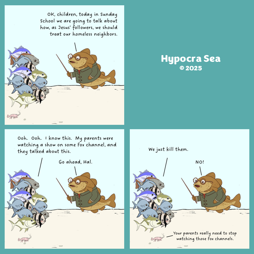 Hypocra Sea is a comic strip poking fun at hypocrisy in a fictional undersea society. Any resemblance to real life is the sign of an active imagination.