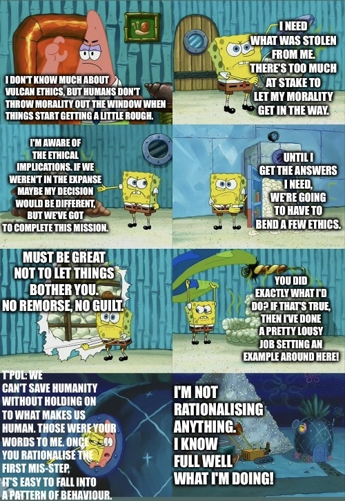 Edit: not sure you can make out the blurry captain of the Orville here getting scolded on the Enterprise